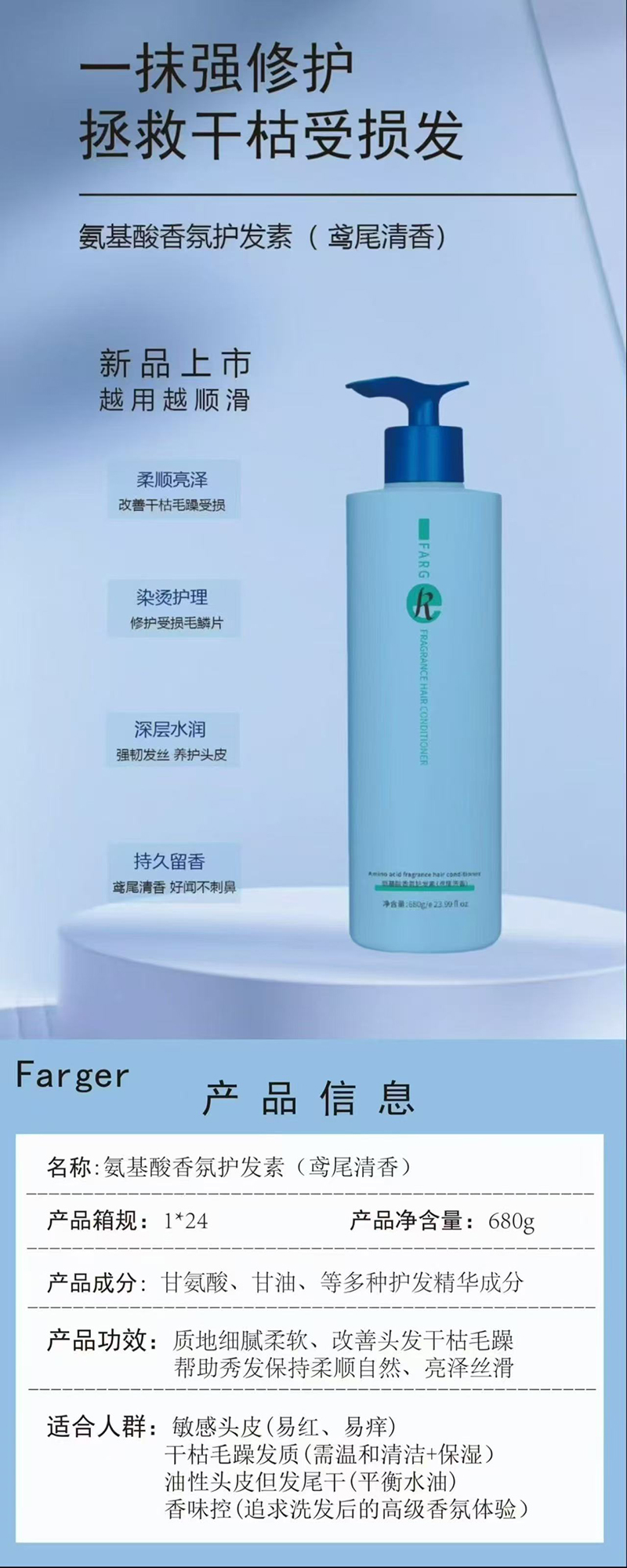 商品名称:上新/发歌玻尿酸水光·氨基酸·盈润·去屑·香氛洗发露护发素护发膜680-700g六款可选/专场