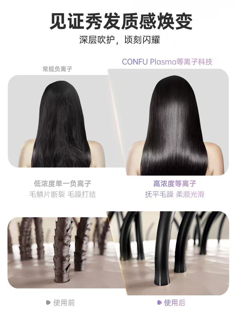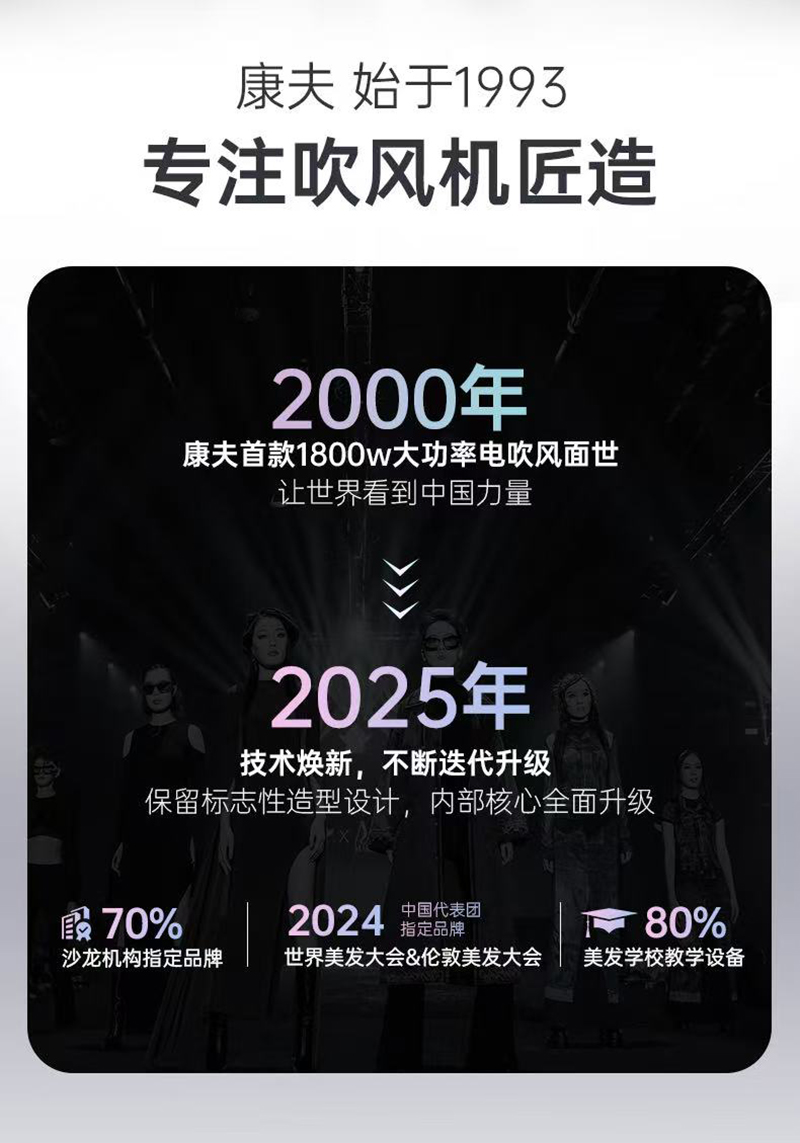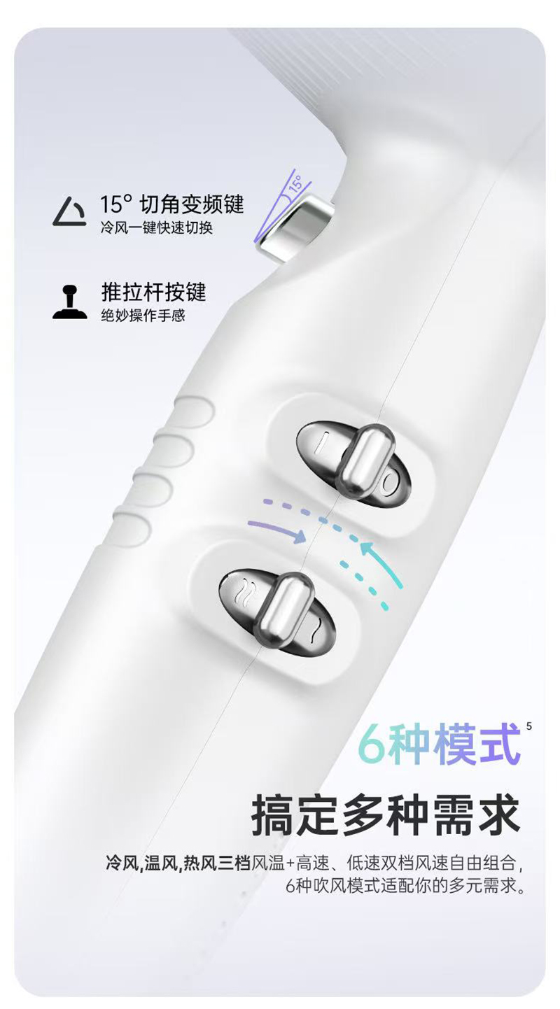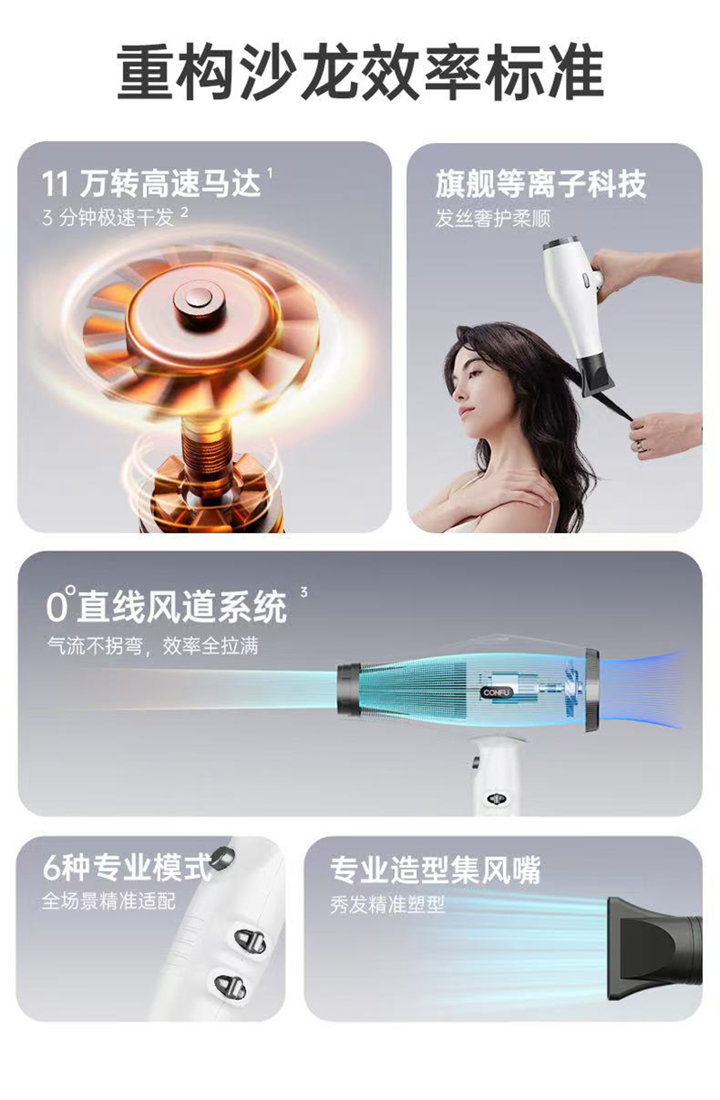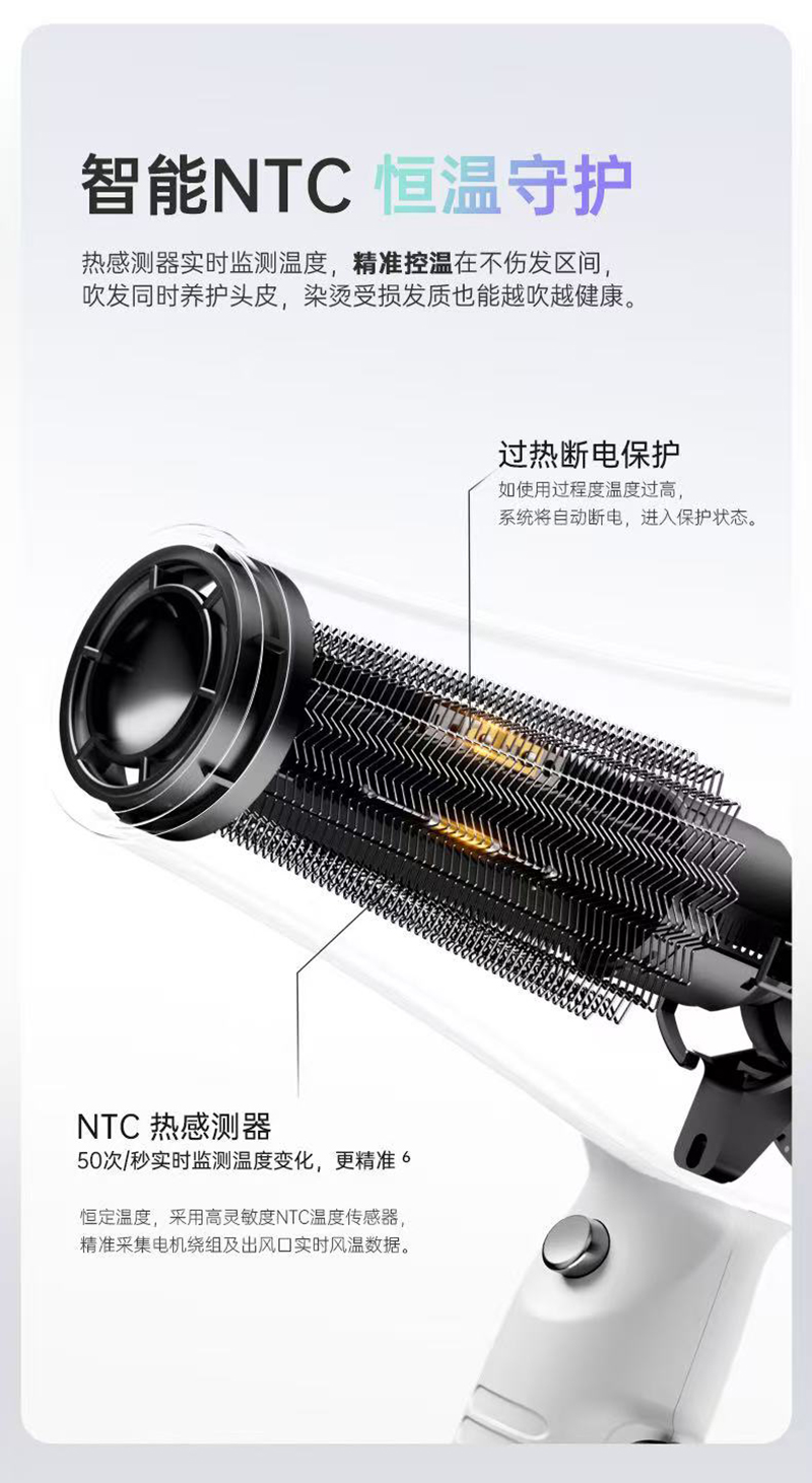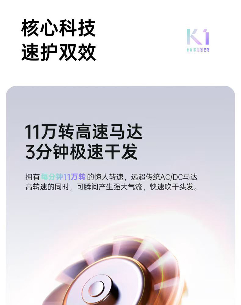 上新/康夫K1轻量化等离子智能控温电吹风2000W3.5米加长线390g灰·白·粉3色可选